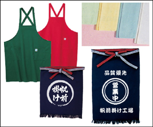 規制品・オーダー品、各種帆前掛け・エプロン・タオル